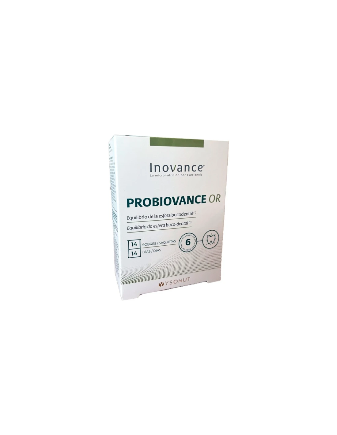 Inovance Probiovance Oral es un complemento alimenticio a base de 3 cepas probióticas (Lactobacillus rhamnosus,Lactobacillus reuteri y Lactobacillus salivarius) que contribuye a reforzar la flora bacteriana de la boca reduciendo la inclamación y evitando que las sustancias patógenas colonizen en ella.