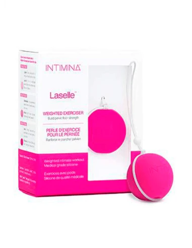 Intimina Ejercitador Kegel es una pequeña bola con peso que provoca vibraciones cinéticas haciendo que los músculos se contraigan y relajen mientras caminas.