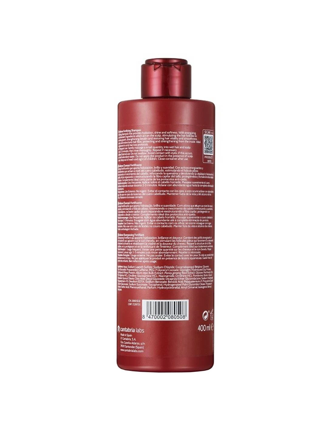 Este champú contiene activos antioxidantes y fortificantes de la fibra capilar: cafeína, trycoenergyzer y Keratin pro-complex.