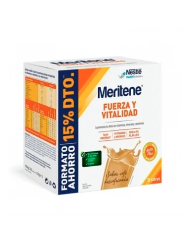 BENEFICIOS DE MERITENE FUERZA Y VITALIDAD CAFE DESCAFEINADO 30 SOBRES FORMATO AHORRO -15%