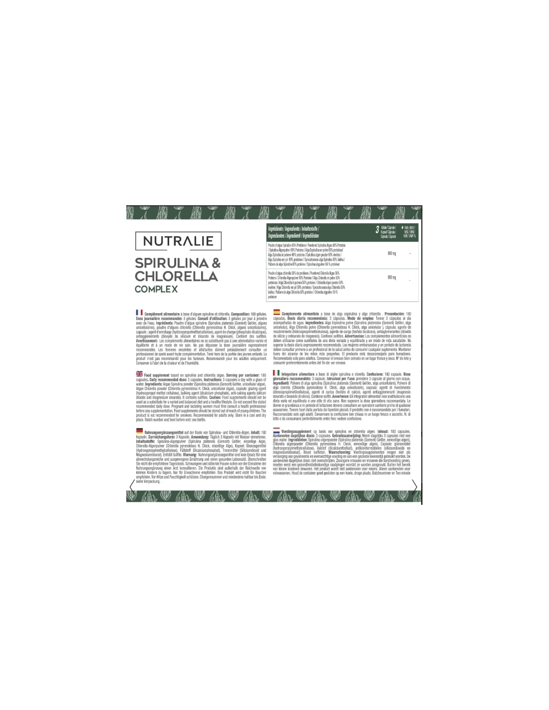NUTRALIE ESPIRULINA & CHLORELLA 180 CAPS