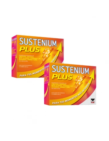 Sustenium Plus Duplo 2 x 12 sobres se trata de un suplemento alimenticio a base de vitaminas, sales minerales y aminoácidos que contribuyen a proporcionar energía a diario.